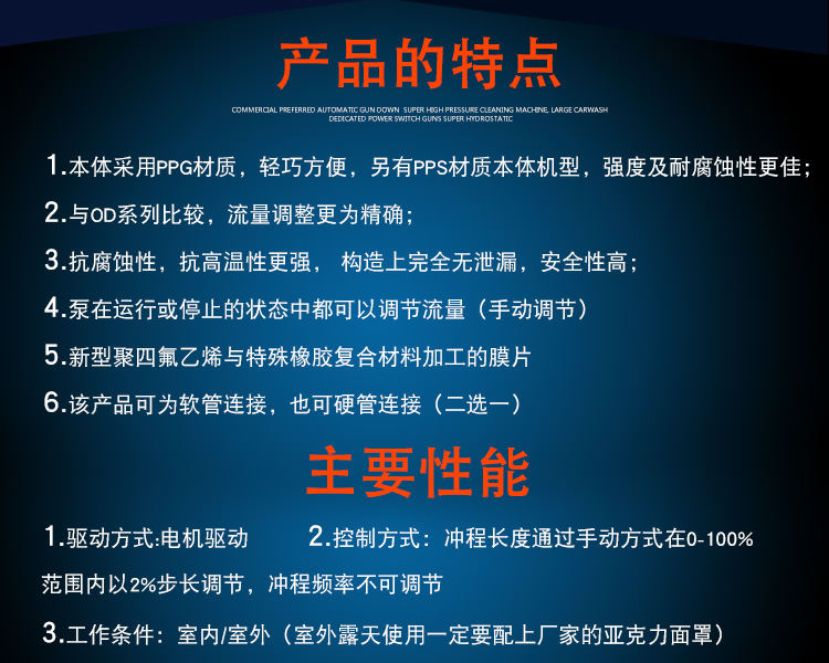 ●本体采用PPG材质,轻巧方便,另有PPS材质本体机型,强度及耐腐蚀性更佳;
