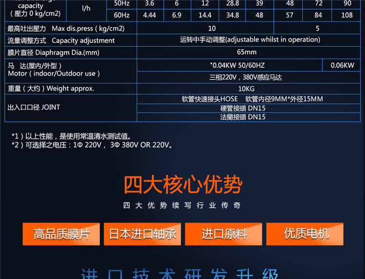 ●泵在运行或停止的状态中都可以调节流量(手动调节);
