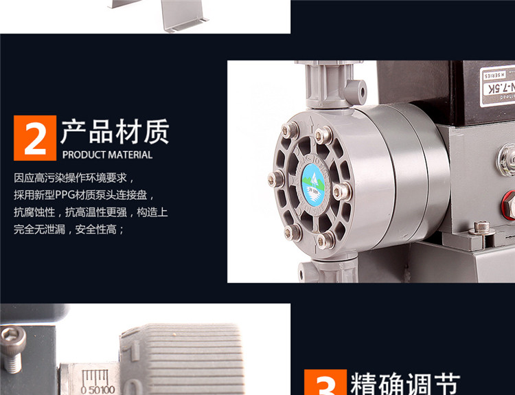 ●因应高污染操作环境要求,采用新型PPG材质泵头连接盘,耐污染性更强;