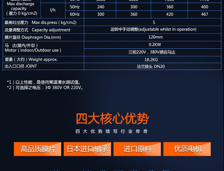 ●泵在运行或停止的状态中都可以调节流量(手动调节);