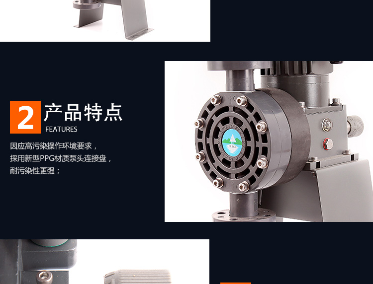 ●因应高污染操作环境要求,采用新型PPG材质泵头连接盘,耐污染性更强;