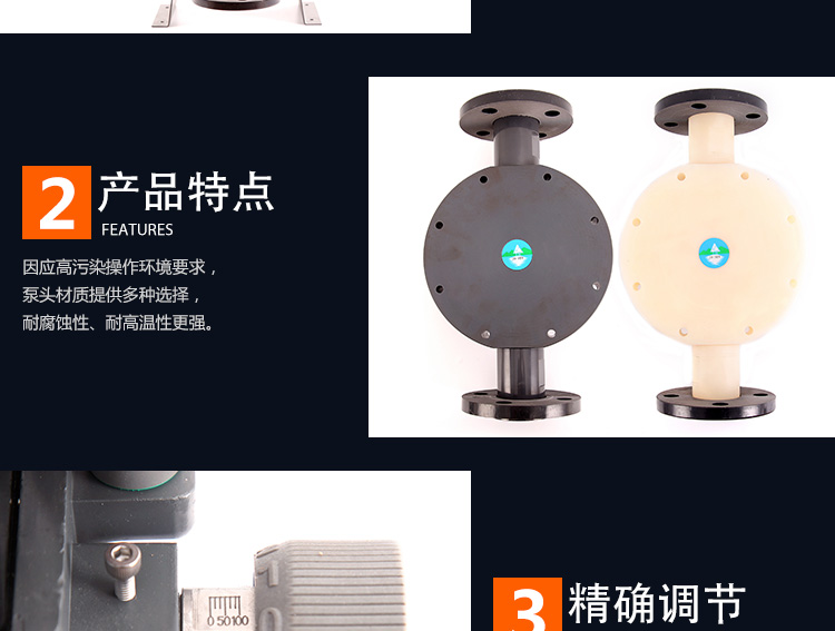 ●因應高污染操作環境要求,採用新型PPG材質泵頭連接盤,耐污染性更強;