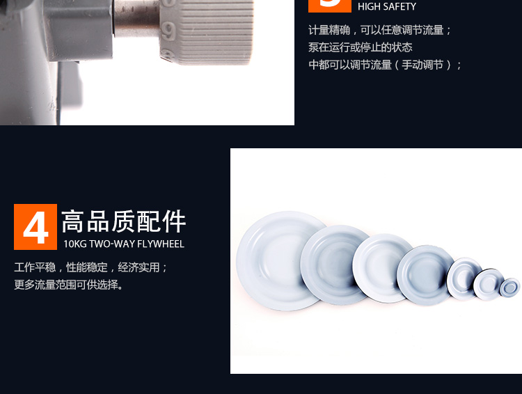 ●泵在運行或停止的狀態中都可以調節流量(手動調節);