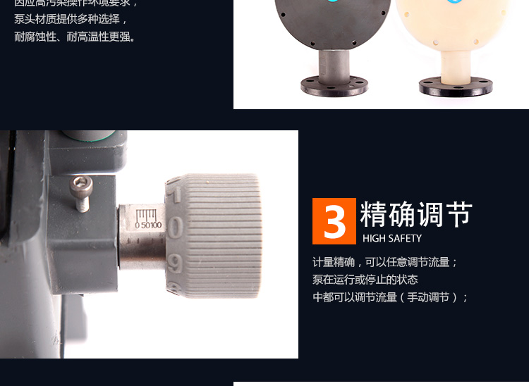 ●因應高污染操作環境要求,採用新型PPG材質泵頭連接盤,耐污染性更強;